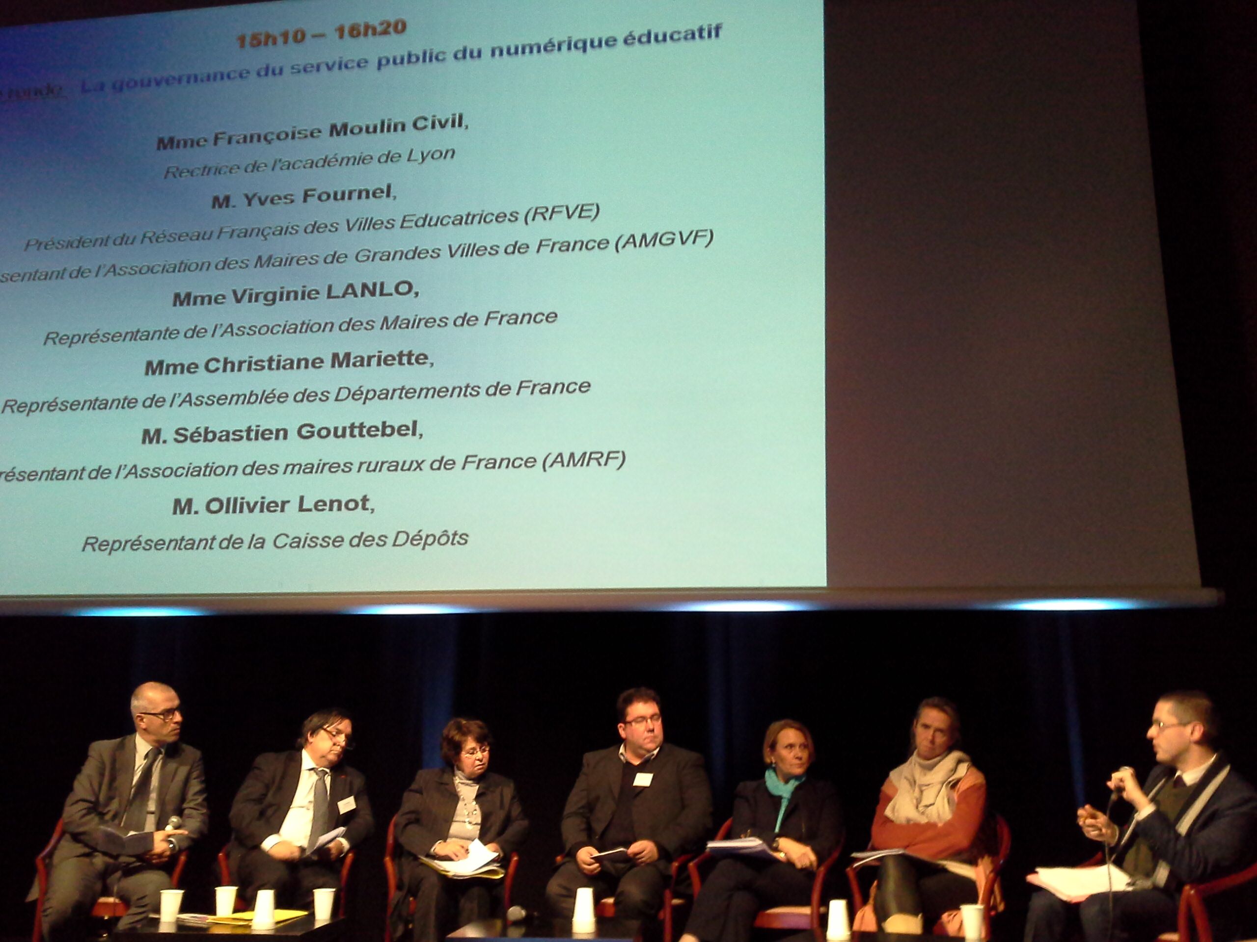 Lors d'une table ronde rassemblant les représentants des associations d'élus et de la Caisse des Dépôts, avec la rectrice de Lyon, Madame Françoise Moulin Civil, et conclue par Mme Fleur Pellerin, ministre déléguée à l'innovation et au numérique, il a été convenu de poursuivre ce travail de concertation en vue de définir les conditions de création d'une gouvernance du service public du numérique éducatif respectueuse des compétences de chacun (plateforme numérique de bonnes pratiques ou charte).